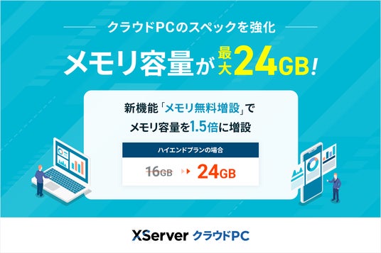 いつでも・どこからでもPCにアクセスできる『XServer クラウドPC』、メモリ容量を無料で1.5倍(最大24GB)に拡大できる「メモリ無料増設」機能の提供を開始