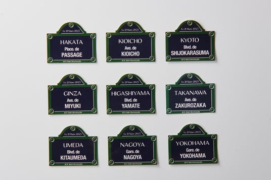 <30周年記念ステッカーをプレゼント>3月21日より、各対象店舗をご利用いただいたお客様に数量限定で30周年記念ステッカーをプレゼント。フランスの道路標識をモチーフにした、各店の店名と、店舗が面する通りの名前が書かれた遊び心のあふれるデザインです。数量限定のため、在庫がなくなり次第配布終了となります。各店を回りながら何種類集められるか楽しんでみませんか。