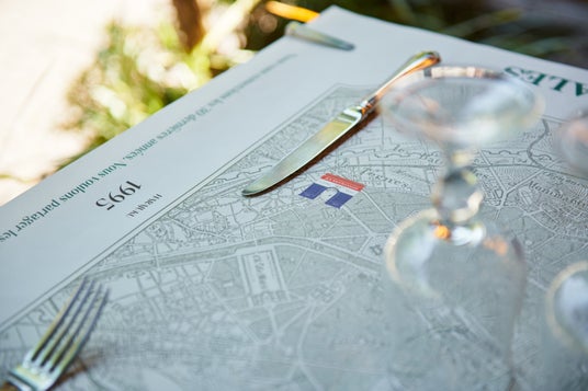 この記念ロゴをデザインした手提げ袋やブラッスリー(レストラン)で使用するテーブルペーパーを作製。また、マグネットなどの限定グッズにも展開し対象店舗にて販売します。