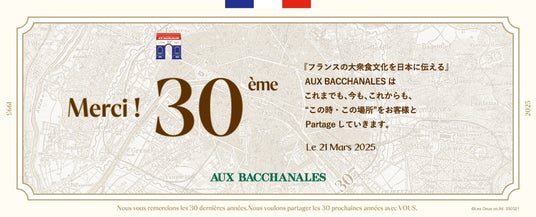 毎月21日はオーバカナル「30周年の日」! フランスの大衆食文化を伝える「AUX BACCHANALES」は3月21日にブランド創立30周年を迎えます