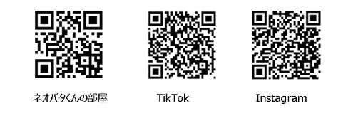 ネオバタくんの公式TikTok、Instagramアカウントでは、ネオバタくんと仲間たちが活躍中です。