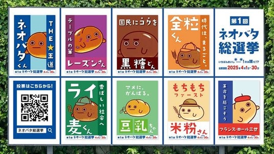 朝食の定番、ちょっとした軽食、さらにはサンドイッチアレンジなど、ネオバターロールは幅広いシーンで活躍できる商品です。このパンを“もっと楽しんでもらいたい”という想いからスタートした「ネオバタ総選挙」は、テレビCMやSNS投稿をきっかけにあなたの一票によって、推しキャラの公約が実現するかもしれない――。この春、パン好きはもちろん、まだネオバタを食べたことのない方も、ぜひ“無視はよくない”この企画にご注目ください!