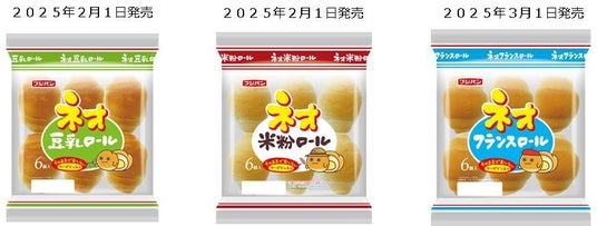昨今、国産原料を使用した食品のニーズや健康志向の高まりから、『豆乳』や『米粉』は食品としても大変注目されています。2025年2月発売の『ネオ豆乳ロール』は、無調整豆乳を使用し、ふんわり、しっとりとした食感と、やさしい甘さが特長の食べやすいロールパンに仕上げました。『ネオ米粉ロール』は、ネオシリーズのおいしさとマーガリン入りという特長はそのままに、国産米粉を使用し、もっちりとした食感のロールパンに仕上げました。(穀物比率:小麦粉80%、米粉20%)※小麦アレルゲンが含まれています。『ネオフランスロール』は、ネオシリーズ初のソフトフランス生地のロールパンです。そのままでもおいしくをコンセプトに、やわらかく食べやすい仕立てにこだわりました。