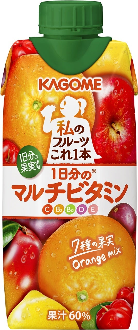 「私のフルーツこれ一本 1日分のマルチビタミン」は、果実200g分使用※1し、オレンジのおいしさを楽しみながら1日分※2のマルチビタミン(C・B2・B12・D・E)が手軽に摂れる果実ミックス飲料です。“朝のフルーツは金”といわれるように、フルーツにはビタミンC・B2・Eなど複数のビタミンが含まれています。7種の果実ブレンドならではのおいしさで、手軽な朝のビタミン習慣におすすめです。