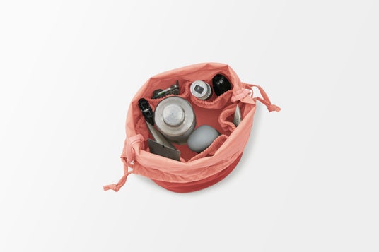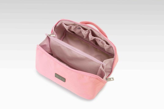 スキンケアアイテムやクリームなどを立てたまま収納できるスタンドポーチ。どこに何があるか一目でわかるので、準備の時も旅行先でも使いやすい設計です。内側にはポケットが全面に搭載されているのでブラシや小瓶などの仕分けも簡単。大容量の収納力と可愛らしい巾着デザインで人気のアイテムです。