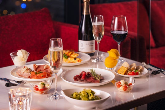 この度、大切な節目となるお食事会をより特別で思い出に残る時間にしていただきたいという想いから、ランチタイム、ディナータイムそれぞれ各1組限定でご予約いただける特別プランをご用意しました。期間中は、ビュッフェとプレミアムドリンクフリーフロー料金また個室料金ともに10%オフでご利用いただけます。絶景が見渡せるガラス張りの個室空間にて、気兼ねなくゆったりとしたお食事と銘酒をお楽しみください。