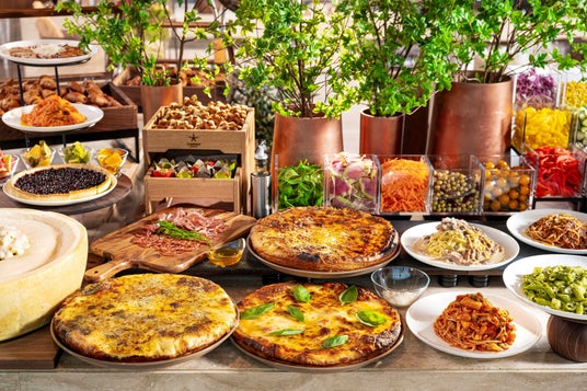 全時間帯ビュッフェ方式を採用しており、朝食は、全国から届く食材を厳選し手づくりにこだわったメニューを豊富に揃えており、ランチ・ディナーは、季節折々の素材にこだわった本格イタリアンビュッフェで厳選したワインとの”食べ合わせやマリアージュ”を存分にお愉しみいただけます。