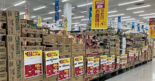 長年にわたり地域の皆様に親しまれてきた綿半ホームエイド川中島店が、新たな試みとして、通常のホームセンター商品に加え、加工食品や日用品を中心としたアウトレット商品を大々的に販売するスタイルへと進化しました。