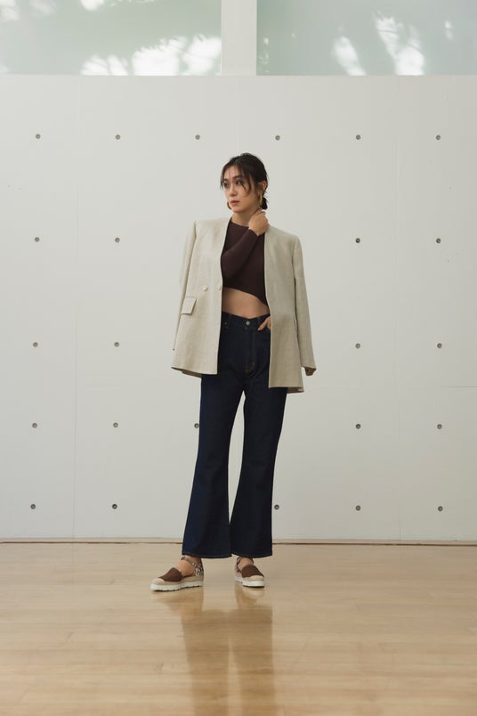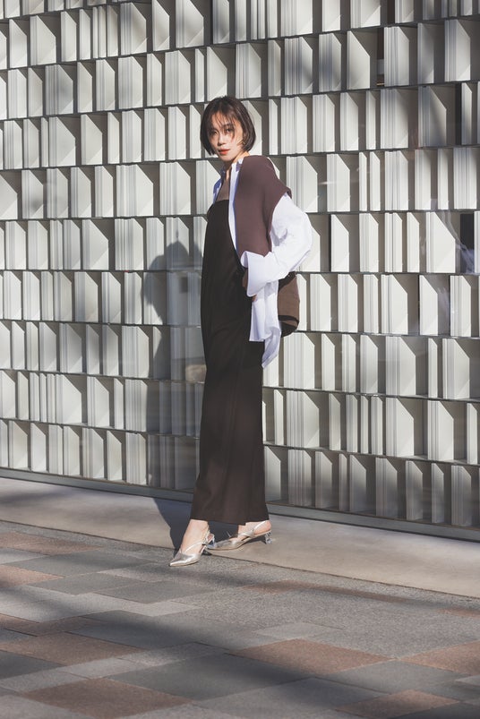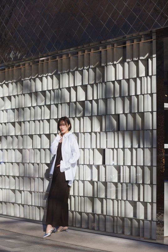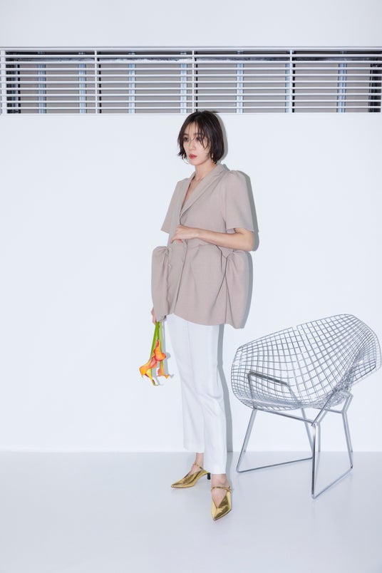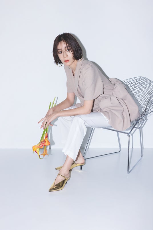 トレンドマテリアルを組み合わせて楽しむ前向きな姿勢を大切に。