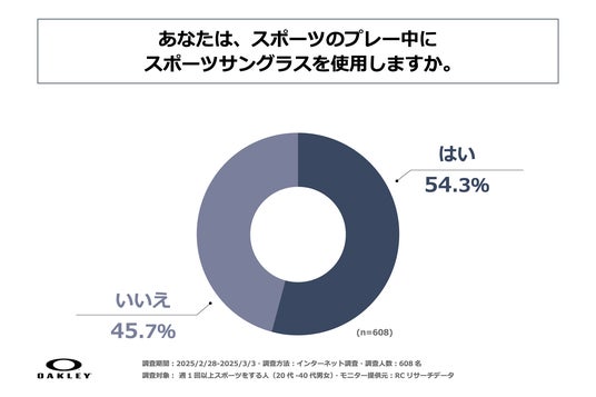 屋外でプレーする野球やゴルフ、自転車競技などではまぶしさがプレーの妨げになることもあります。近年、プロアスリートを中心に、パフォーマンス向上を目的としたスポーツアイウェアの使用が進んでいますが、一般のスポーツ愛好家のサングラス使用実態はあまり明らかになっていないことを背景に、オークリーは、週に1回以上スポーツをする人とその中でスポーツサングラスを使用している方を対象にした「スポーツサングラスの使用実態」に関する調査を実施しました。