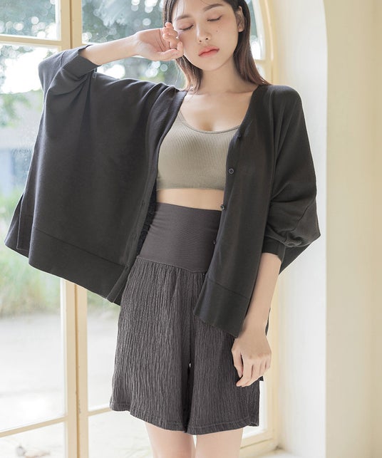暑い夏でも、室内にいると冷房でお腹が冷えがちに。腹巻付きデザインを採用しているため、薄手ながら程よくフィットし優しくお腹を包み込んでくれます。