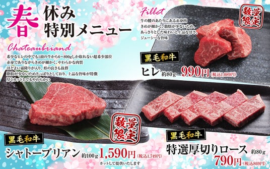 株式会社あみやき亭(代表取締役社長:宮崎卓也)が運営するあみやき亭中部から春休み限定のちょっとリッチなメニューのご紹介です♪