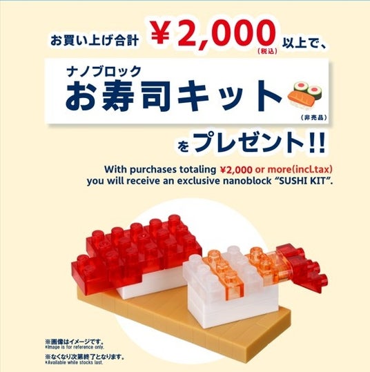 POPUP STORE開催を記念して、税込2,000円以上お買い上げのお客様に「nanoblock(R) お寿司キット」をプレゼントします。