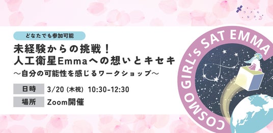 株式会社Kanatta(東京都目黒区、代表取締役社長:井口恵)が運営する「コスモ女子」は、3月20日(木・祝)に人工衛星Emmaへの想いから自分の可能性を感じるワークショップを開催します。