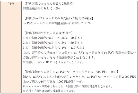 au PAY ふるさと納税、au PAY カードで寄附すると最大5%還元する「春のau PAY カードキャンペーン」を3月31日まで開催