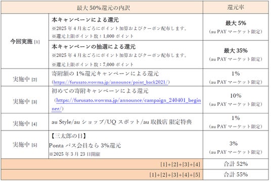 そのほか詳細はこちら(https://furusato.wowma.jp/announce/campaign_250320/)をご確認ください。