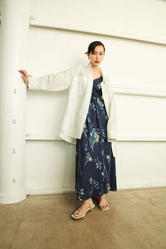 FRの刺繍がポイントのワンピースとしても着れるオーバーサイズのシャツ。FRAY I.Dオリジナルの多色使いのボタニカル柄プリントを施したキャミソールワンピースは、デコルテを綺麗に見せてくれる深めのVネック、たっぷりとギャザーを寄せたフレアシルエットが春らしくドラマティックな印象を演出してくれます。