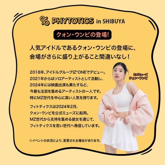 【公式ミューズ「クォン・ウンビ」来場決定!】フィトティクス・イエローオフライン発売記念 渋谷ポップアップイベント開催!