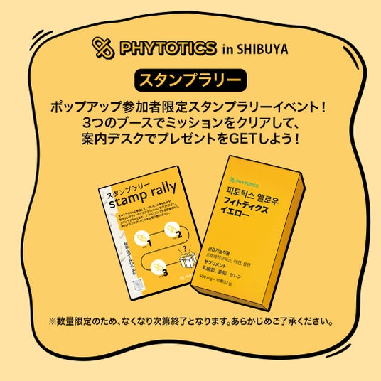 韓国で累積販売数3,000万カプセルを突破した「フィトティクス・イエロー」が、2025年3月22日(土)から23日(日)にかけて、東京都渋谷区にてポップアップイベントを開催いたします。