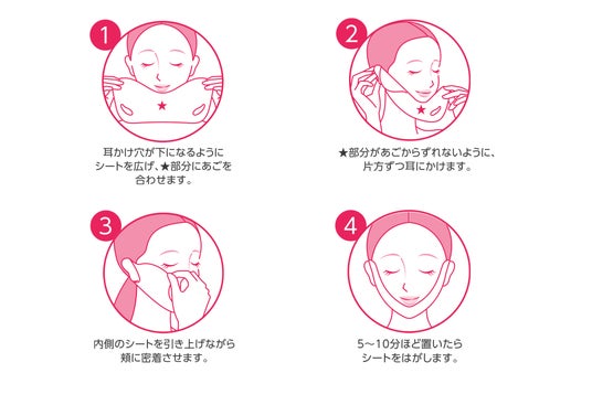 1.耳かけ穴が下になるようにシートを広げ、中心部分にあごを合わせます。