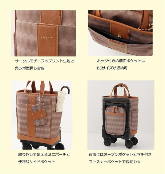 SWANYは、1937年創業の老舗メーカーです。歩行に不安のある方でも安心して外出できるよう、機能的で使いやすいキャリーバッグを開発・販売しています。