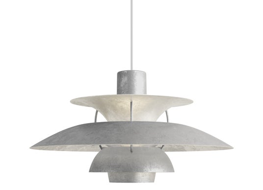 製造過程で生じた細かな傷や打痕により、不良品とされてしまった「PH 5」の塗装を剥離し、アルミやスチール本来の無垢な質感を活かしたデザイン。ヴィンテージや不完全な「PH 5」を、新たな価値を持つ「PH 5 Retake」へとアップサイクルしました。ペンダントの塗料を丁寧に取り除き、アルミニウム製のシェードとスチール製の下部シェードが持つ美しさを未加工の素材ならではの風合いで引き立てています。シェード内側の金属の質感は、優しい反射光を生み出し、あたたかみのある心地よい雰囲気を演出します。3枚シェードによる光の反射原理に基づいた設計により、光のほとんどを下方に向けながらも、周囲にも柔らかな光を広げ、器具自体も美しく照らします。