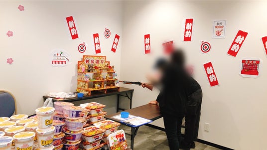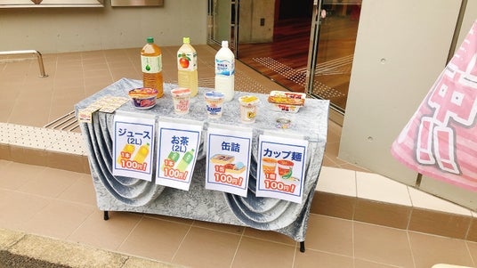8階の多目的ホールでは、お菓子や楽しいおもちゃが狙える射的や、日比谷花壇様によるお花やプリザーブドフラワーの販売、コーヒーや海苔などをお得な価格でご購入いただける返礼品ギフトアウトレット販売や、お茶やジュース、缶詰などの日用品を全て100円で販売する生活応援セールなども行われていました。