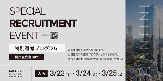 今回は関西エリア向けの特別選考プログラムとなるため、この機会をお見逃しなく!