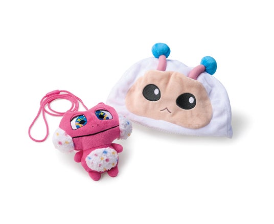 左)ぬいぐるみポシェット「けけちゃま」(約14.4cm・紐約60cm) 1,900円、右)「ファンターネ!」ファンキャップ(あーぷん)(頭囲 約52~56cm) 2,301円