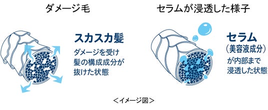 ・従来のクリーム状のトリートメントでは、油分が邪魔をして髪内部まで美容液成分(※1)が届きにくいことに着目(※4)。シャンプーとトリートメントの間に、高濃度浸透処方を採用したヘアセラムを塗る習慣を提案。