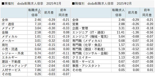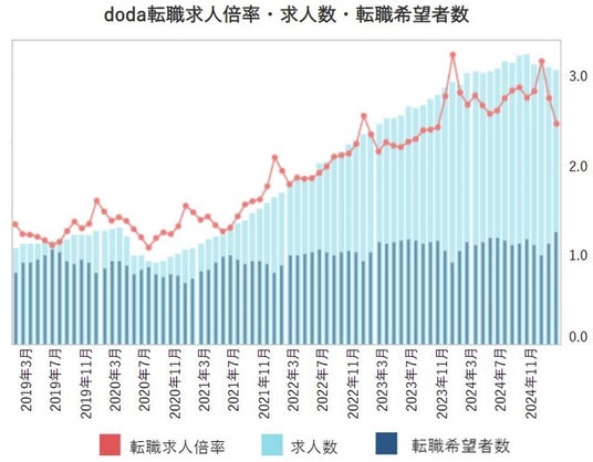 パーソルキャリア株式会社が運営する転職サービス「doda(デューダ)」(編集長:桜井 貴史)は、2025年2月の転職求人倍率をまとめた「doda転職求人倍率」を発表いたします。