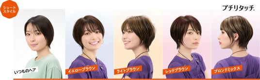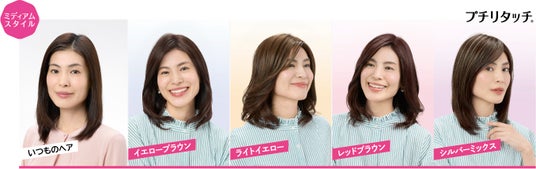 今回のリニューアルでは、より幅広い年齢層にヘアスタイルを楽しんでいただけるよう、用途を白髪カバーに限らず、おしゃれ染め後の「プリン髪隠し」もできる“ちょい足しウィッグ”としてカラーを刷新しました。第一弾の『プチリタッチ』で人気のイエローブラウンはそのままに、新たに5色の新色をラインナップしています。そのうちの4色は、ベースの色味と異なる複数色の毛材を独自に配合した筋状のハイライトカラーが楽しめる新『プチリタッチ』のためのオリジナルカラーです。