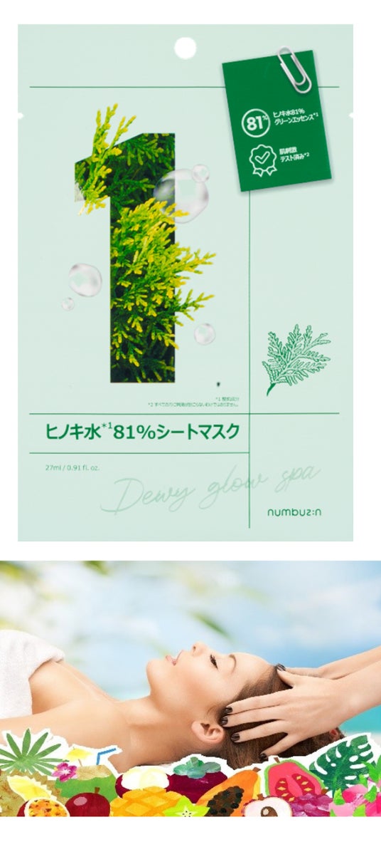 期間中「東京ドーム天然温泉 Spa LaQua(スパ ラクーア)」のエステ&リラクゼーション店舗のイベント限定「フルーツエステ」メニューをご利用の方全員に「ナンバーズイン 1番ヒノキ水81%シートマスク」を1枚プレゼントいたします。