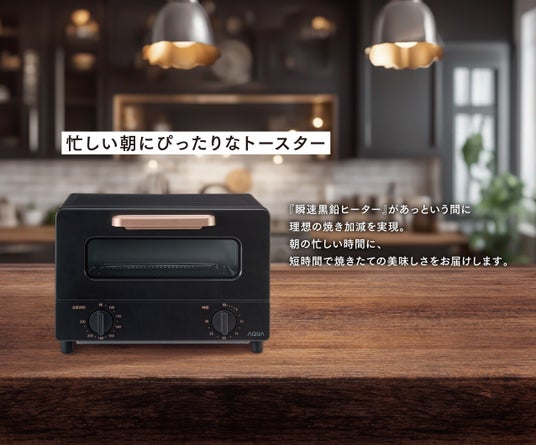 グラファイト式で、忙しい朝でも0.2秒で発熱。90秒でおいしい。AQUA 「瞬速黒鉛ヒーター」搭載 トースター新発売