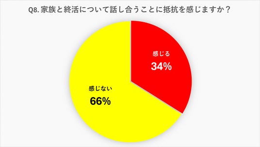 「家族と終活について話し合うことに抵抗を感じますか?」の質問には、「感じる(34%)」「感じない(66%)」という回答になりました。