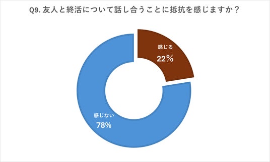 「友人と終活について話し合うことに抵抗を感じますか?」の質問には、「感じる(22%)」「