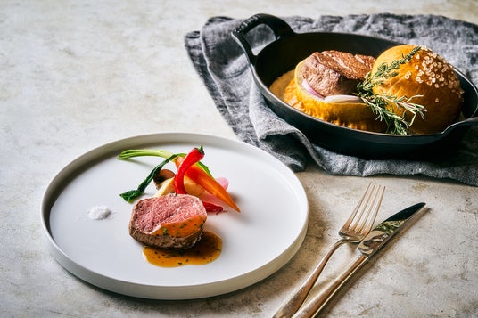 フランスブルターニュ地方のゲランド塩を使用し、伝統のレシピで作る塩パイで牛フィレ肉を包みました。蒸し焼きにすることで柔らかに仕上がり、優しい塩の旨味を感じられます。エシャロット、白ワイン、フォンドヴォー、ハーブを加えたさっぱりとしたソースでこだわりの一皿をお楽しみいただけます。