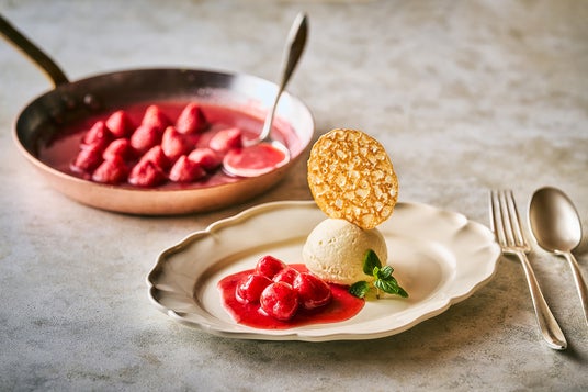 チェリーブランデーを加えフランベして香りをつけるフランスの伝統的なデザート。シェフが厳選した季節のフルーツを、お客様の目の前で仕上げる演出も楽しみの一つです。