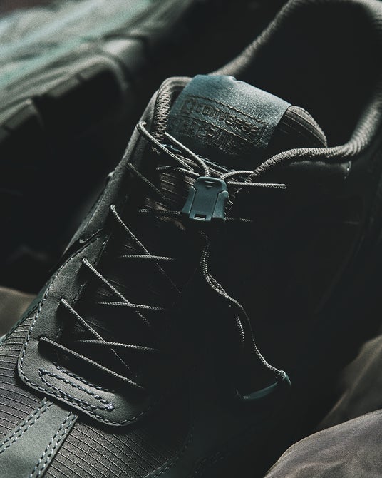 カラーは、ブラックとフォリッジグリーンの2色。ミリタリーシューズを彷彿とさせる落ち着いたカラーパレットが特徴で、シンプルなスタイリングにもアクセントを加える。