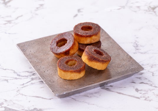 ふんわり焼き上げたバウムクーヘンにカラメルソースと砂糖をかけてもう一度オーブンで香ばしく焼き上げました。