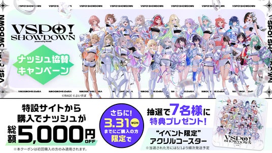 「VSPO! SHOWDOWN powered by RAGE」協賛特設ページから新規購入いただいた方を対象に、抽選で7名様にイベント限定アクリルコースターをプレゼントいたします。