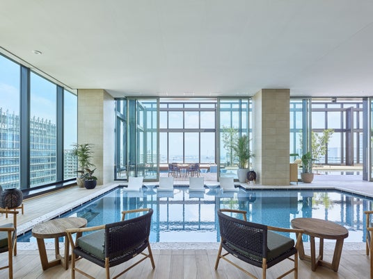 みなとみらいの上空に停泊したホテルをイメージし、クルーザーの持つ曲線や素材感をモチーフにしたデザインで、ロビー階は“船舶デッキ”、客室を“キャビン”として設計。20階のパブリックエリアには、スカイプールやレストラン、サロンなど、多彩な施設が集積し、みなとみらいエリアを見渡す抜群の眺望とくつろぎの空間をご提供します。