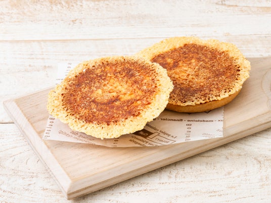 ダイスチーズとシュレッドチーズをチーズフォンデュソースと混ぜ、卵と砂糖を多く使用した菓子パン生地に包み、片面にシュレッドチーズで羽を作り、平たく焼き上げたパンです。※数量限定:1日48個
