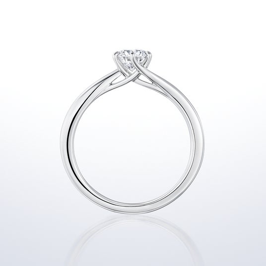 ※輝きを追求し生まれたアームの形状、「Brightness Line」を採用。鋳造製法の曲線美とプラチナの光沢感が、途切れることなくセンターダイヤモンドの聡明な輝きと一体となり、どこから見ても美しく手元で永遠と輝き続けます。