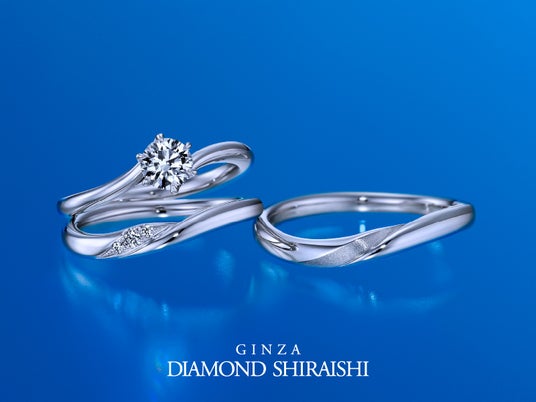 センターダイヤモンドが光を最大限取り込める繊細な造りによって、より一層ピュアな輝きを放ちます。シンプルを追求するシライシの想いと技術力で、コースティクスの「自然の美」をデザインに昇華させた究極のウェーブラインのエンゲージリングです。