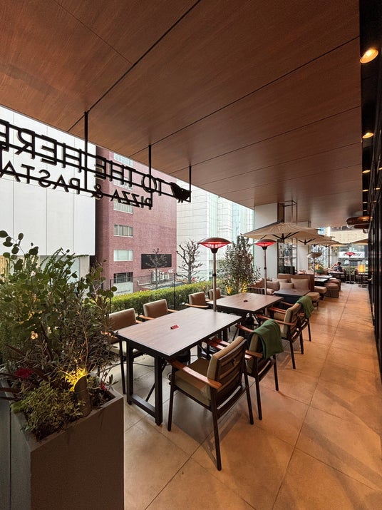 是非、 焼き立てピッツァや新作パフェをテラス席でもお楽しみください。