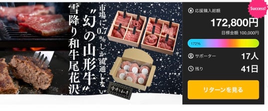 東京都調布市で精肉店を営み、2027年に創業を100年を迎える西都食肉販売有限会社(本社:東京都調布市国領町3-8-15 くすのき5-122、代表:田辺雄一)は、市場での流通量が0.7%しかない山形牛の「雪降り和牛尾花沢」を堪能できる商品をクラウドファンディングサイト「Makuake」にてプロジェクトを開始しました。