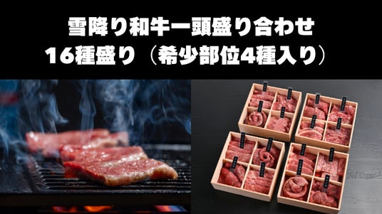 ■雪降り和牛尾花沢一頭盛り合わせ16種盛り(希少部位4種入り)市場に0.7%しか流通しない山形県産雪降り和牛尾花沢で作り上げる