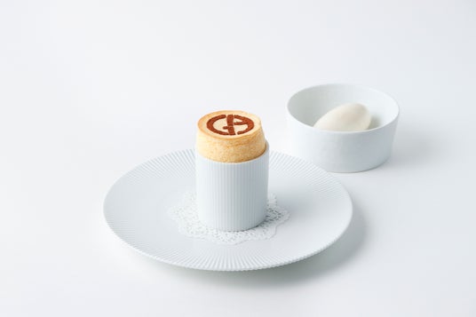 スフレ ティラミスティラミスを独創的に再解釈し、エレガントなスフレとして提供。ジョルジオ アルマーニのロゴをあしらい、洗練されたデザインに仕上げました。