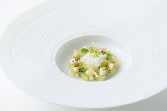 キウイ アニス セロリデザートの前に口の中をさっぱりさせる国産キウイを使用した爽やかな一品。